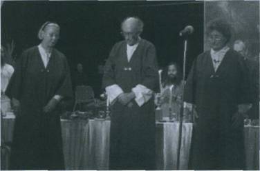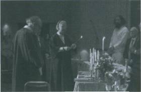 * Prof. Dr. Witteveen, Vizepräsident von „International Sufi Movement" Die Sufi-Bewegung ist – auf vielfältigen Wegen – eine mystische Form im Islam. Wie auch in allen anderen Religionen, soll hier das ,,Normale", das ,,Weltliche" überschritten werden. Mit dem gleichen Ziel aller Gläubigen und wahrhaft Suchenden: auf dem wahrscheinlich einzig möglichen Weg, dem Mystischen, die Nahe zur Schöpfung zu erfahren, den Kontakt zum Gott unserer Schöpfung herzustellen. Es folgt eine Zeremonie mit der Ehrung aller Religionen. Gegen die Dunkelheit menschlicher Ignoranz. Mit Losungen an Hand von – gemeinsamen – Weisheiten aus den heiligen Büchern unterschiedlicher Religionen. Die Welt braucht Frieden. Es gibt immer wieder Kriege, obwohl Religionen Frieden predigen. Unser Fehler ist, dass wenn wir unsere Grenzen erreichen, daraus Konflikte entstehen. Wir sind göttliche Willenskraft! Das Finden / Erkennen unserer Begrenztheit müssen wir überwinden – wir sind alle ,,Eins". Alle Religionen wollen das erreichen! Wir dürfen uns nicht nur auf uns beschrankt oder auf unsere Religion beschrankt sein, sondern tragen die Verantwortung die göttliche Wirklichkeit zu erreichen – was Frieden bedeutet. Hinduismus, Buddhismus, Religion Zarathustras, Judentum, Christentum, Islam und alle Anderen.