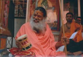 wurde am 26. Mai 1942 in Mekedatu, Südindien, geboren. Ein muslimischer Heiliger prophezeite besondere Weisheit und Kenntnisse, und dass es ihm beschieden sei, die Menschheit zu erheben. Sri Swamiji verehrt alle Religionen und lehrt, dass es möglich ist, Gott auf vielen Wegen zu erreichen. Er bereist die Welt, um spirituellen Suchern entdecken zu helfen, dass alles Gott ist. In ihm finden seine Schüler Mitgefühl, göttliche Liebe und Weisheit, physische Heilung und spirituelle Führung, wenn er sie auf dem Weg des Yoga Sadhana leitet – um ihr eigenes wahres Selbst zu entdecken, zu verstehen und zu realisieren. Er spricht einfach und direkt zu den Herzen der Menschen. In Wirklichkeit ist er ein stiller Lehrer, der durch deine Liebe und Hingabe lehrt. Sri Swamiji vermittelt einen wesentlichen Teil seiner Botschaft durch seine Musik. Er spielt ayurvedische Heil-Ragas und singt selbstkomponierte Bhajans in Sanskrit, Hindi und Englisch. Erneuern der Kultur, Reformieren der Gesellschaft, Schaffen von Frieden und Glück inmitten der Menschheit und Umgestalten dieser in gläubige Menschen ist seine Mission. |